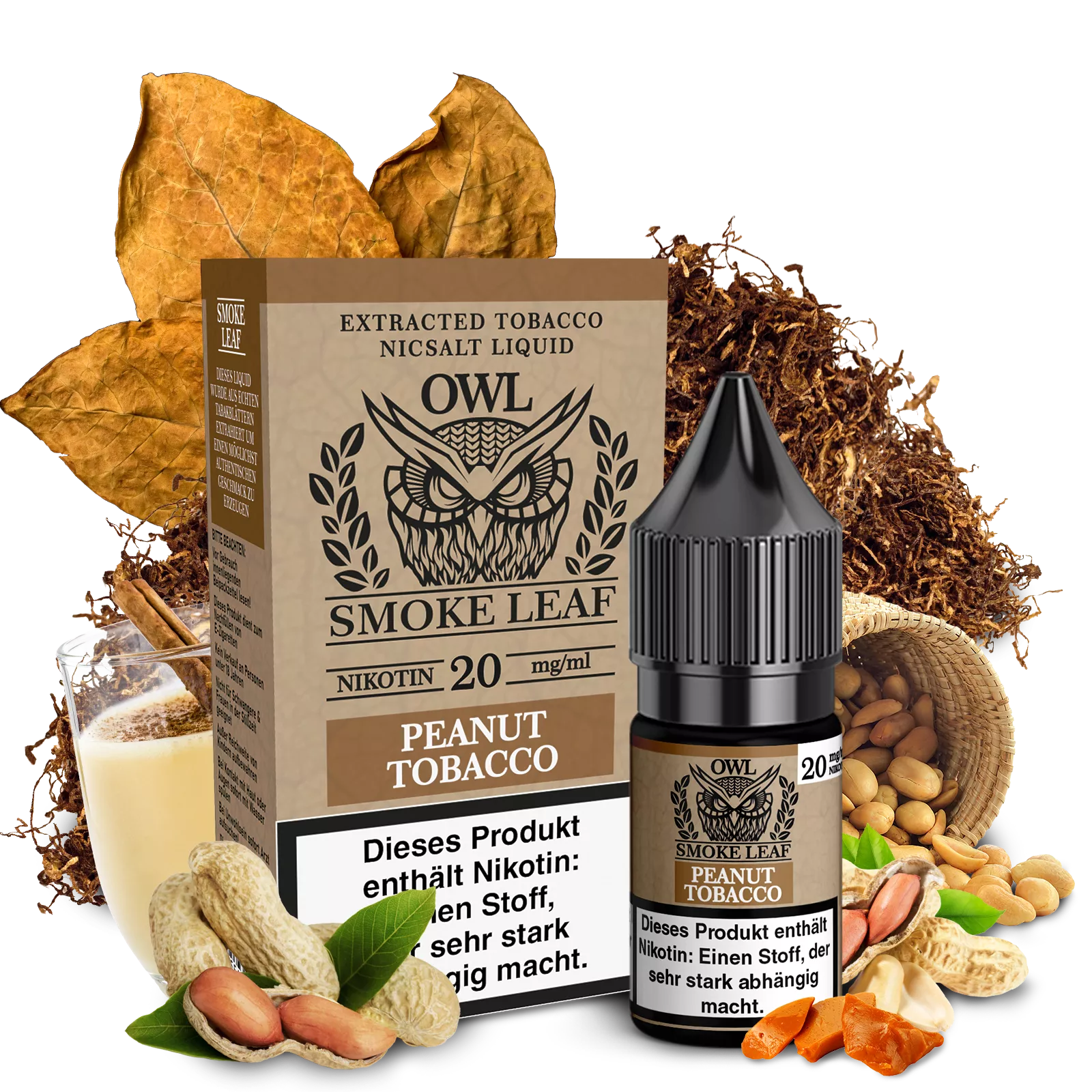 Erleben Sie den OWL Smoke Leaf Peanut Tobacco Nikotinsalz Liquid und verwöhnen Sie sich mit einer reichhaltigen und komplexen Geschmackskomposition. Verfügbar jetzt in unserem Shop.